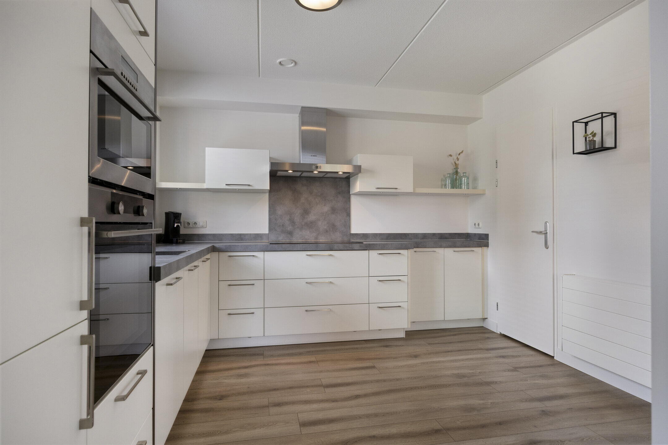 Via de entree met meterkast en garderobe kom je in de ruime woonkamer. Aan de voorzijde bevindt zich de lichte keuken met een nieuw aanrechtblad en diverse inbouwapparatuur zoals een inductiekookplaat, oven, vaatwasser, magnetron, afzuigkap, koel-/vriescombinatie en spoelbak.
